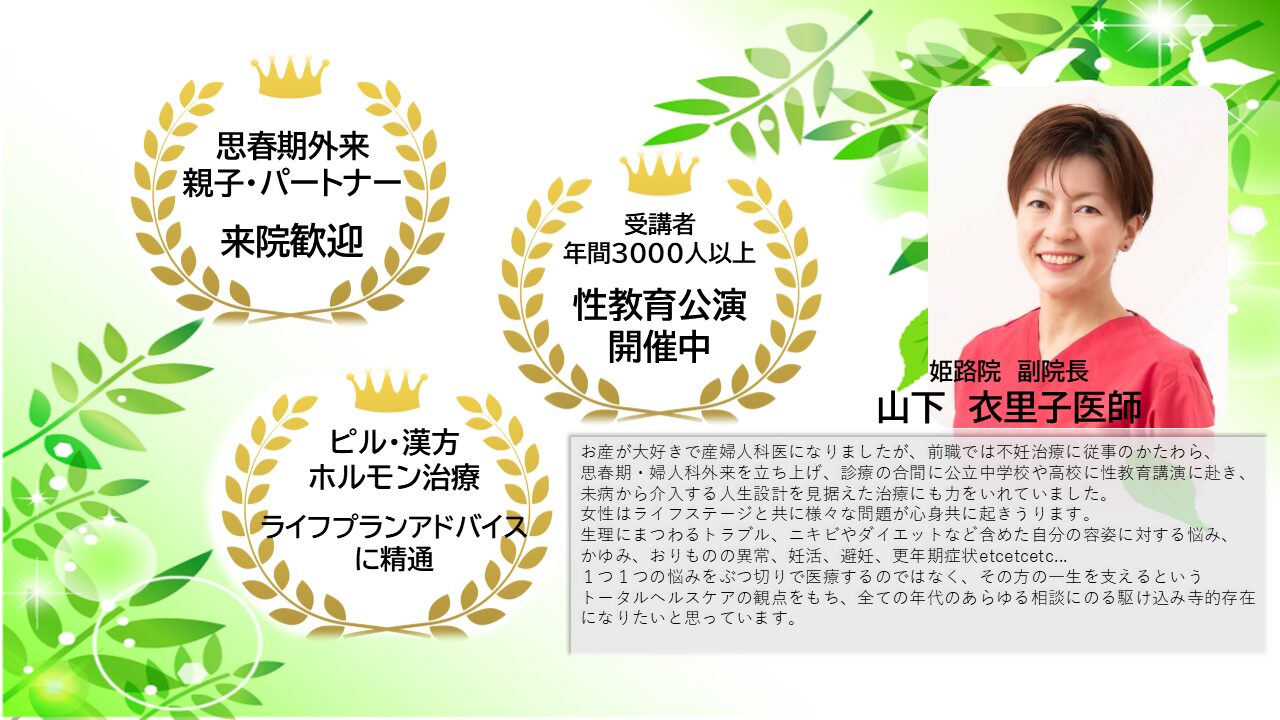 お産が大好きで産婦人科医になりましたが、前職では不妊治療に従事のかたわら、思春期・婦人科外来を立ち上げ、診療の合間に公立中学校や高校に性教育講演に赴き、未病から介入する人生設計を見据えた治療にも力をいれていました。