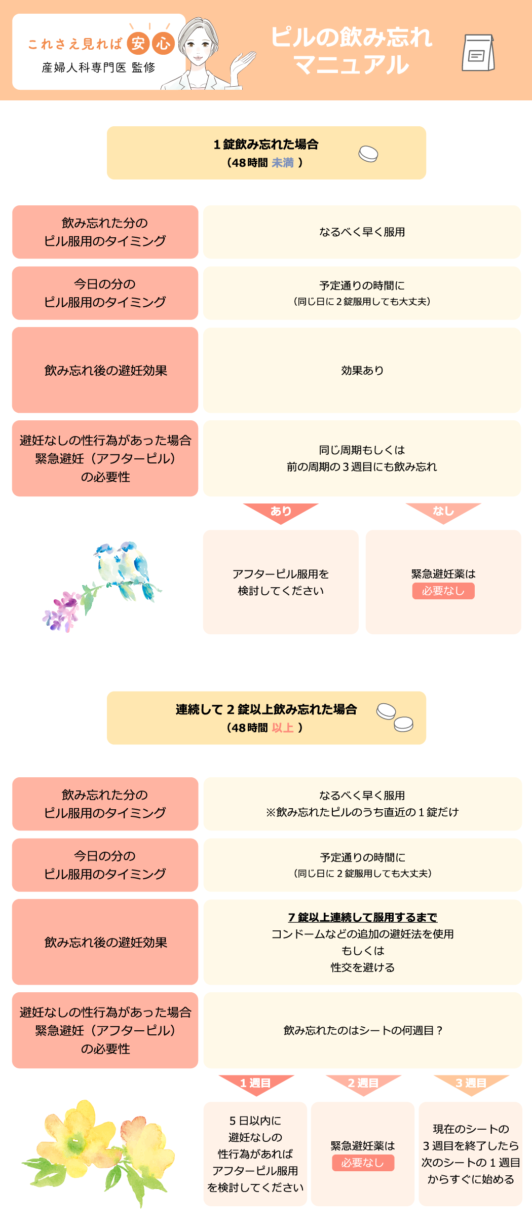 以下に飲み忘れた場合の対処法をお示しします。